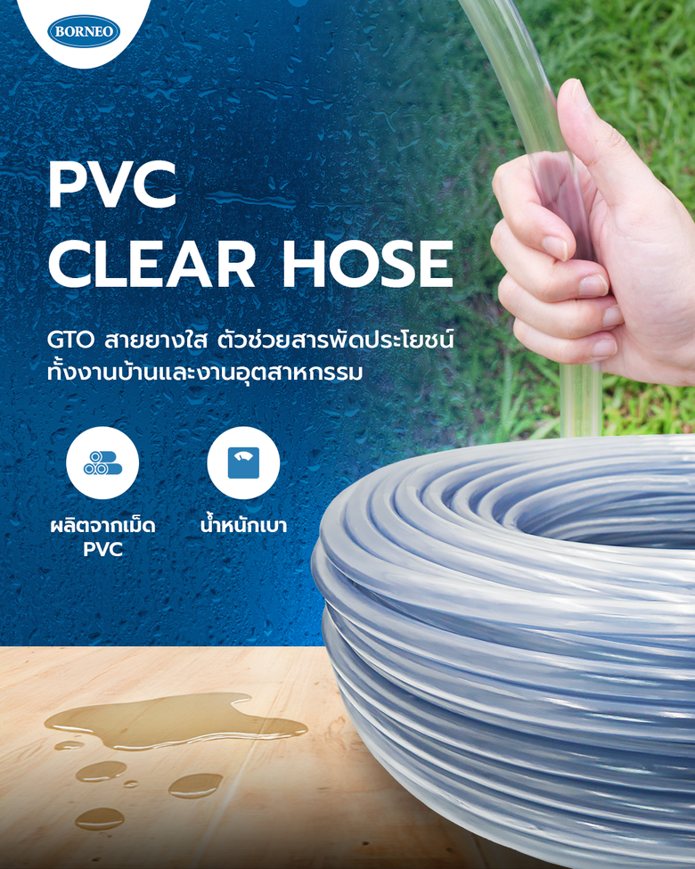 One of the most popular options is the GTO PVC Clear Hose, not only because it’s easy to use but also because it meets a wide range of needs. Its transparency allows you to see the flow of liquid clearly, making it easy to check for blockages or cleanliness. Plus, it’s lightweight, easy to move, and very cost-effective compared to other types of hoses.