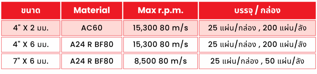 เรซินสูตรพิเศษ ทำให้ลดการสะสมความร้อน ส่งผลให้ได้การกัดกินชิ้นงานที่สม่ำเสมอ ตัดคมตลอดการใช้งาน