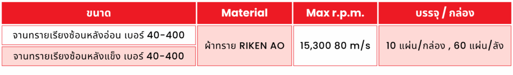 จานผ้าทรายเรียงซ้อนหลังอ่อนและหลังแข็ง รุ่น RIKEN JAPAN
