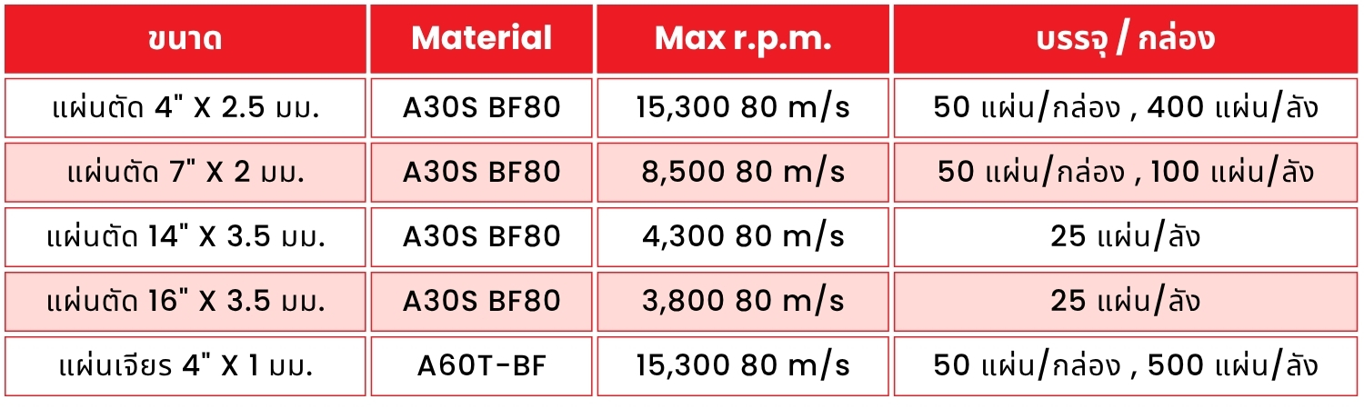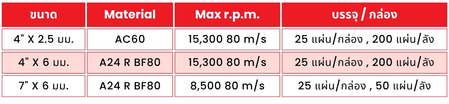 ✅ เรซินสูตรพิเศษ ทำให้ลดการสะสมความร้อน ส่งผลให้ได้การกัดกินชิ้นงานที่สม่ำเสมอ ตัดคมตลอดการใช้งาน