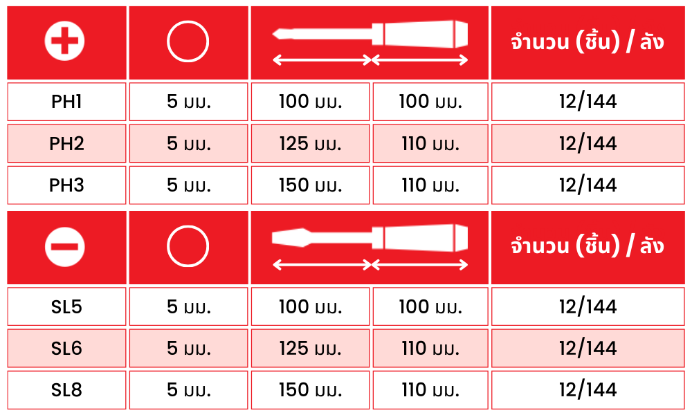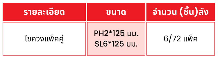 ✅ แพ็คคู่ ขนาด PH2*125 มม. และ SL6*125 มม.
