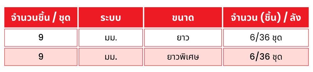 ขนาดผลิตภัณฑ์